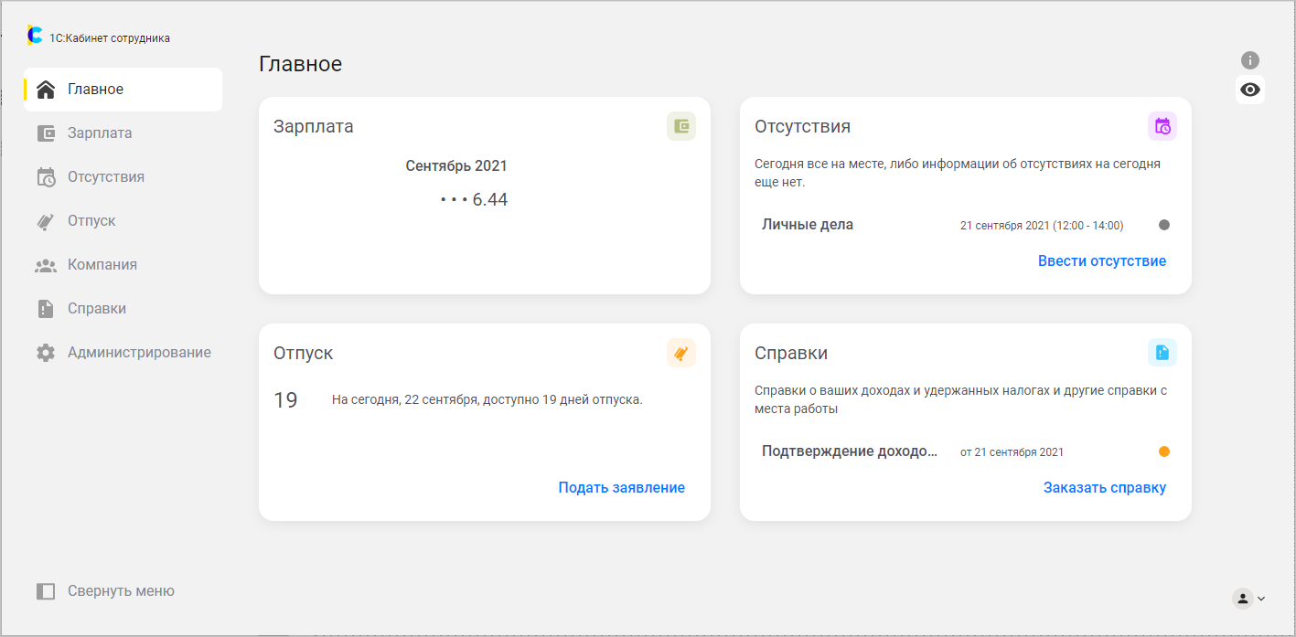 1С:Кабинет сотрудника решает сразу несколько практических задач бизнеса. Например, сотрудники получают доступ к расчётным листкам в электронном виде — без распечаток и запросов в бухгалтерию.