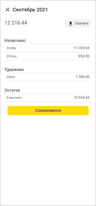 В онлайн-сервисе можно увидеть как текущий расчётный лист↓