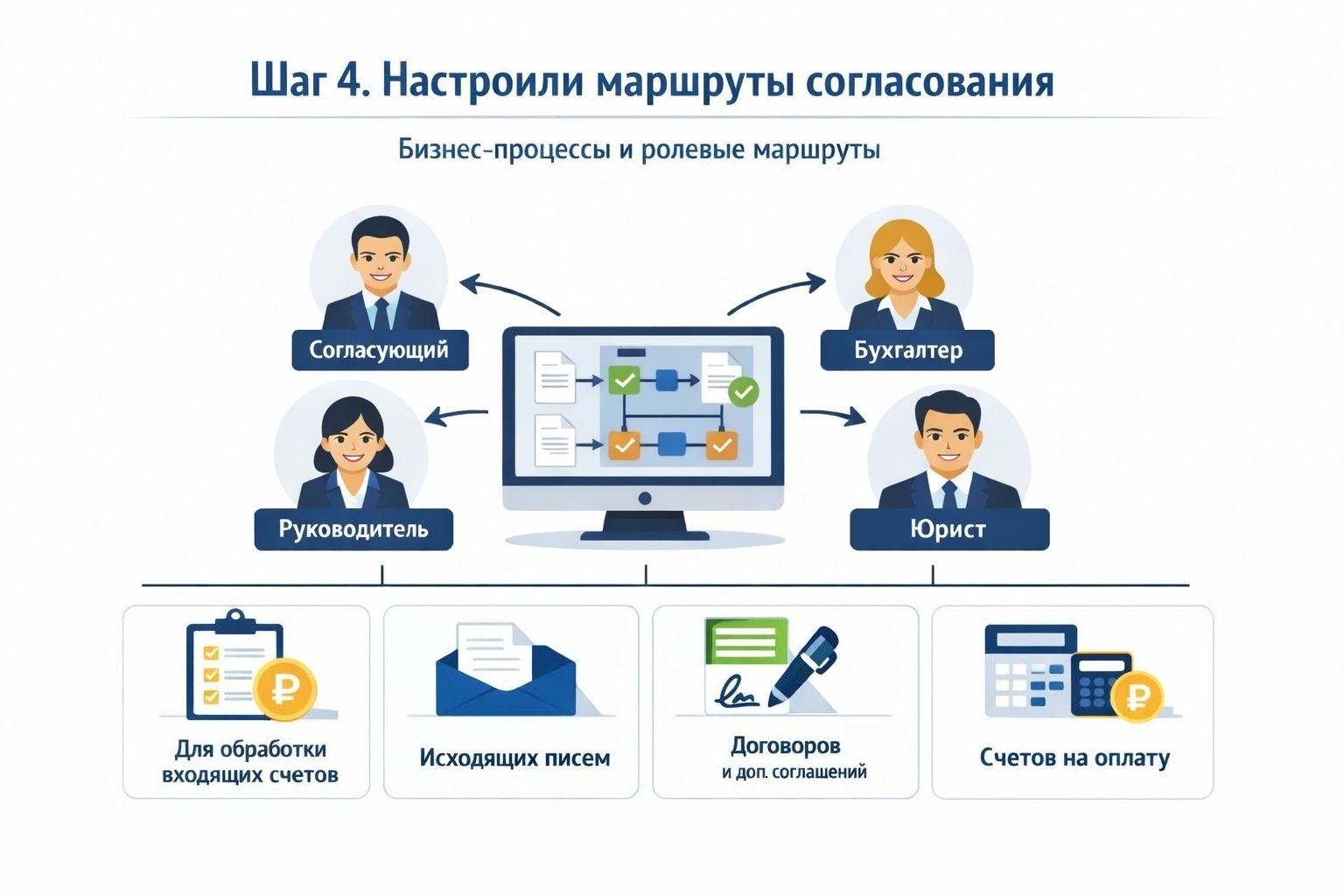 Навели порядок в документах, настроили прозрачные маршруты согласования и превратили ЭДО из формальности в полноценный инструмент управления.